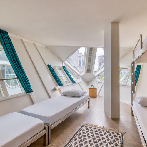 Wolltest du schon immer einmal wissen, wie es ist, in einer Kubuswohnung zu übernachten? Im Stayokay Rotterdam ist es möglich! Die schiefen und krummen Kunstwerke von Piet Blom sind der Blickfang der Stadt. Entdecke auch die anderen Highlights der Stadt; die Markthalle und der Alte Hafen sind gleich um die Ecke.