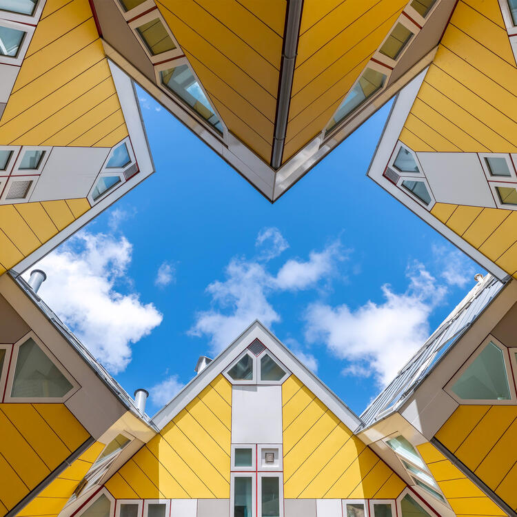 Übernacht in den berühmten Kubuswohnungen in der zweitgrößten Stadt der Niederlande. Entdeck Architektur, Kunst und Kultur!